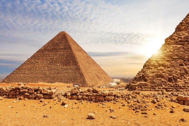 Places where ancient secrets whisper through the sands, A land of pharaohs, pyramids.
